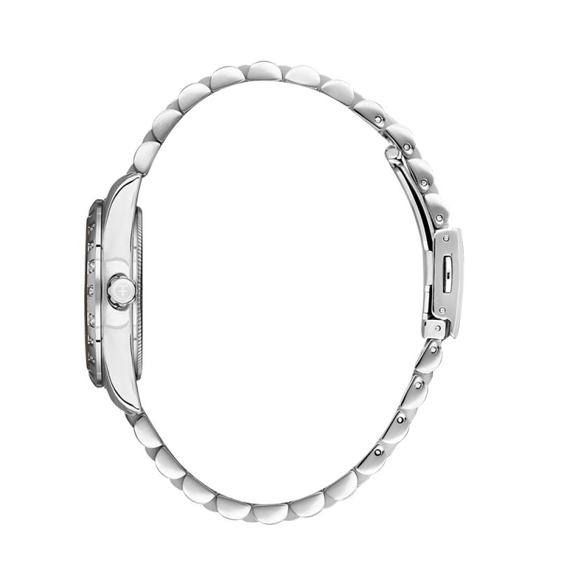 Дамски часовник Freelook от колекцията Lumiere. Седеф аналогов дисплей с показател за дата. Декорация от нежни кристали по безела. Стъкло минерал-кристал. Моделът е с метален корпус и верижка от неръждаема стомана. Задвижва се от кварцов механизъм. Водоустойчивост 5 ATM - допускат се леки пръски и взимане на душ, не се препоръчва обилно мокрене.