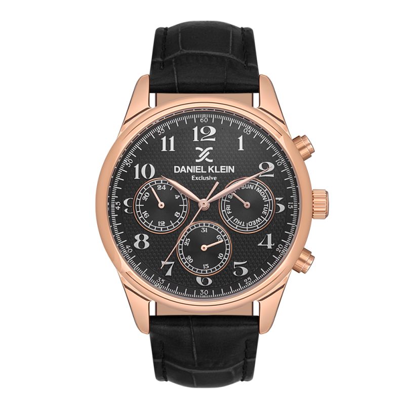 Стилен мъжки часовник Daniel Klein с мултифункционален дисплей от колекцията Exclusive. Моделът е с метален корпус и каишка от естествена кожа. Минерално стъкло устойчиво към надраскване. Задвижва се от кварцов механизъм. Водоустойчивост 5 ATM - допускат се леки пръски и взимане на душ, не се препоръчва обилно мокрене.