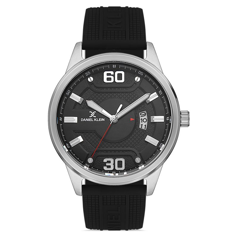 Мъжки часовник Daniel Klein от колекция Premium. Моделът е с метален корпус и черна силиконова каишка. Аналогов дисплей с минерално стъкло и показател за дата. Задвижва се от кварцов механизъм. Водоустойчивост 5 ATM - допускат се леки пръски и взимане на душ, не се препоръчва обилно мокрене.