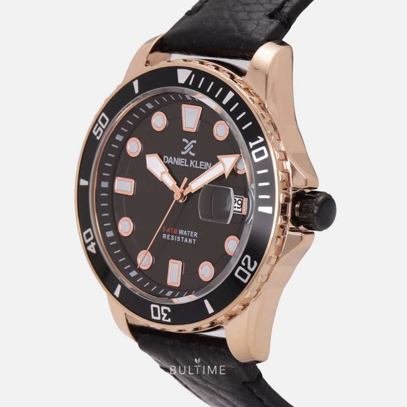Мъжки часовник Daniel Klein със спортно-елегантен дизайн от колекцията Premium. Моделът е с корпус от висококачествена метална сплав и каишка от естествена кожа. Аналогов дисплей с показател за дата. Фосфоресциращи стрелки и индекси. Стъкло минерал-кристал. Задвижва се от кварцов механизъм. Водоустойчивост 5 ATM - допускат се леки пръски и взимане на душ, не се препоръчва обилно мокрене.