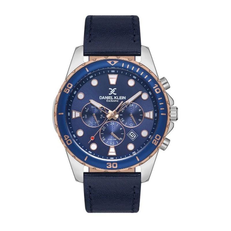 Мъжки часовник Daniel Klein от колекцията Exclusive с мултифункционален дисплей. Моделът е с корпус изработен от висококачествена метална сплав и каишка от естествена кожа. Кварцов механизъм. Водоустойчивост 5 ATM - допускат се леки пръски и взимане на душ, не се препоръчва обилно мокрене.