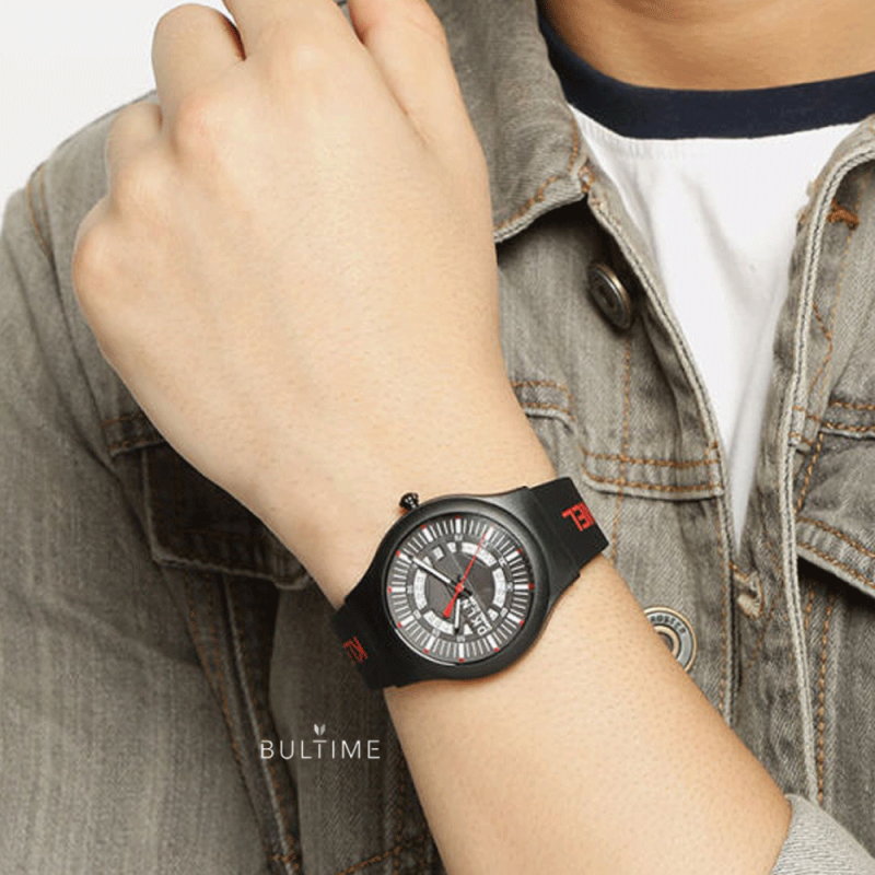 Спортен модел мъжки часовник Daniel Klein. Аналогов дисплей с модерен дизайн с видим диск на датата. Стъкло минерал-кристал. Корпус изработен от висококачествен полимер, съчетан със силиконова каишка. Задвижва се от кварцов механизъм. Водоустойчивост на часовника 3 ATM - допускат се леки пръски, не се препоръчва обилно мокрене.