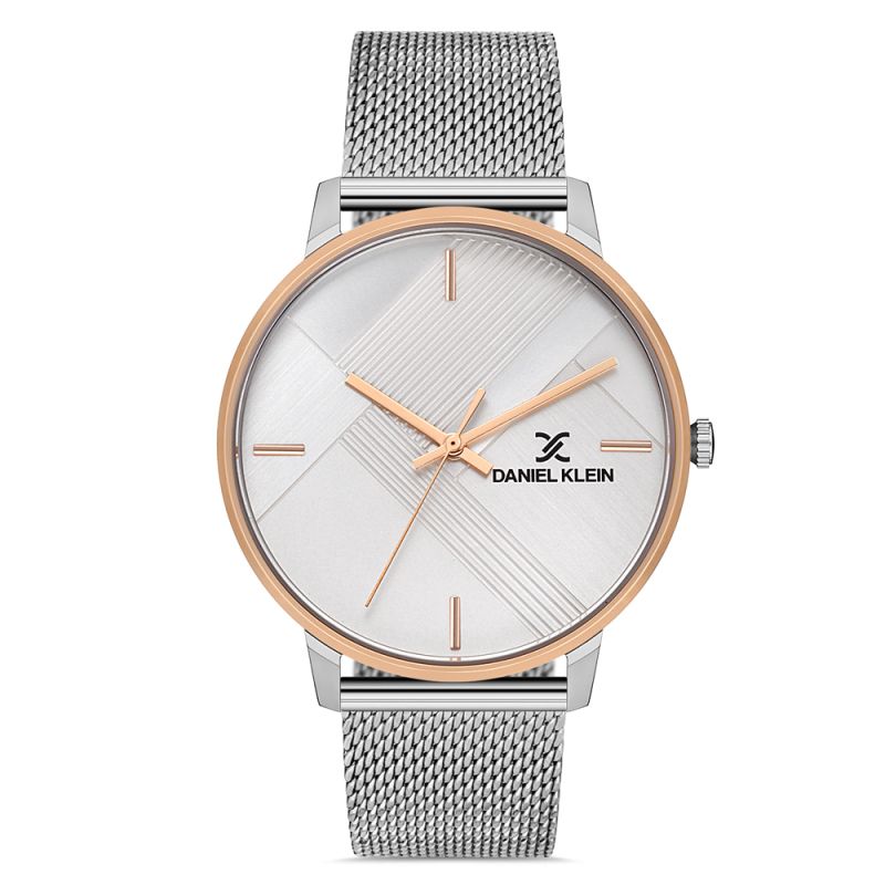 Дамски часовник Daniel Klein от колекция Premium с меш верижка от неръждаема стомана. Метален корпус. Аналогов дисплей с минерално стъкло. Кварцов механизъм. Водоустойчивост 3 ATM - допускат се леки пръски, не се препоръчва обилно мокрене.