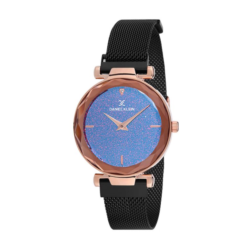 Дамски часовник Daniel Klein от колекцията Premium. Аналогов дисплей с бляскава основа и инкрустиран кристал на 12 часа. Стъкло минерал-кристал. Корпус изработен от висококачествена метална сплав, съчетан с верижка от неръждаема стомана. Задвижва се от кварцов механизъм. Водоустойчивост 3 ATM - допускат се леки пръски, не се препоръчва обилно мокрене.
