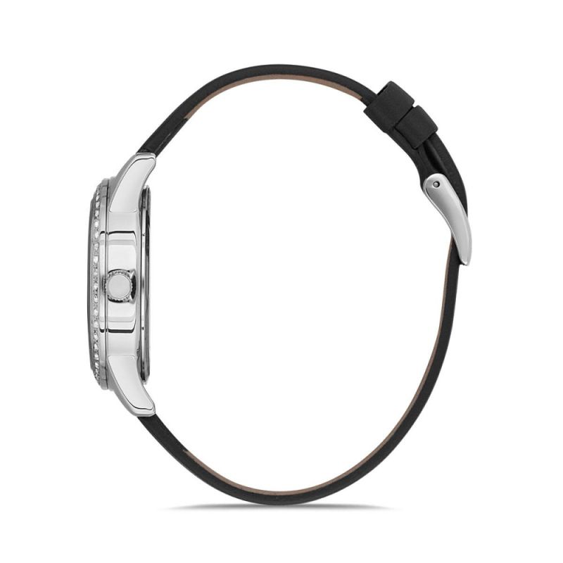 Дамски часовник Daniel Klein с декорация от бляскави кристали. Моделът е със сребрист аналогов дисплей и стъкло минерал-кристал. Метален корпус, съчетан с каишка от естествена кожа. Часовникът се задвижва от кварцов механизъм. Водоустойчивост 3 ATM - допускат се леки пръски, не се препоръчва обилно мокрене.
