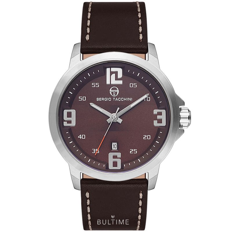 Мъжки часовник Sergio Tacchini от колекцията Classic. Корпус от неръждаема стомана, съчетан с каишка от естествена кожа. Кафяв аналогов дисплей с показател за дата. Стъкло минерал-кристал. Задвижва се от кварцов механизъм. Водоустойчивост 10 ATM - позволява мокрене, къпане и плуване във водни басейни.