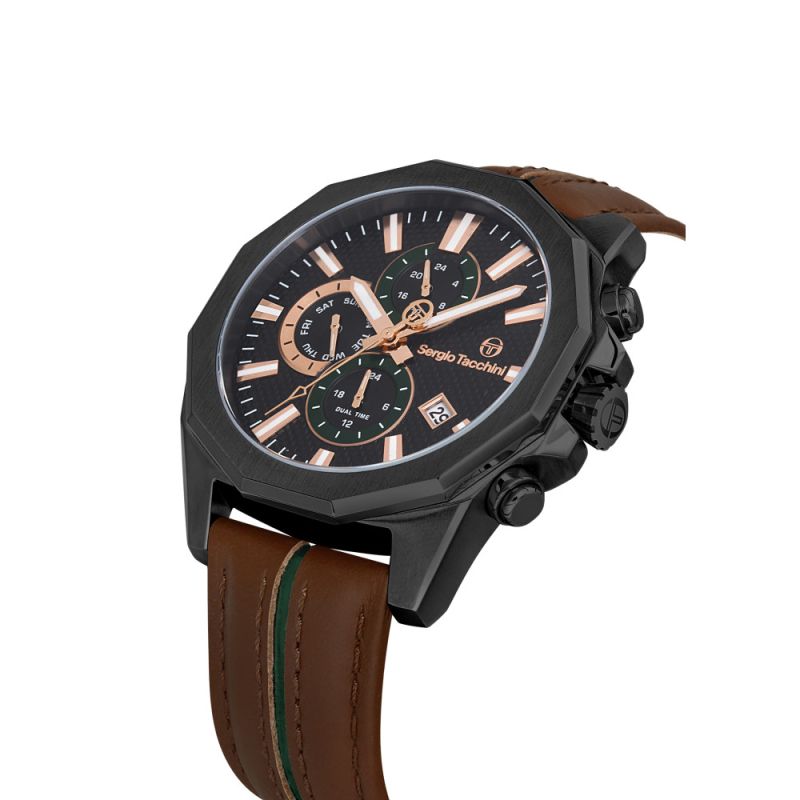 Мъжки часовник SERGIO TACCHINI ST.1.10373-5 с каишка/верижка от Естествена кожа и Кварцов механизъм | Chronodeluxo.bg