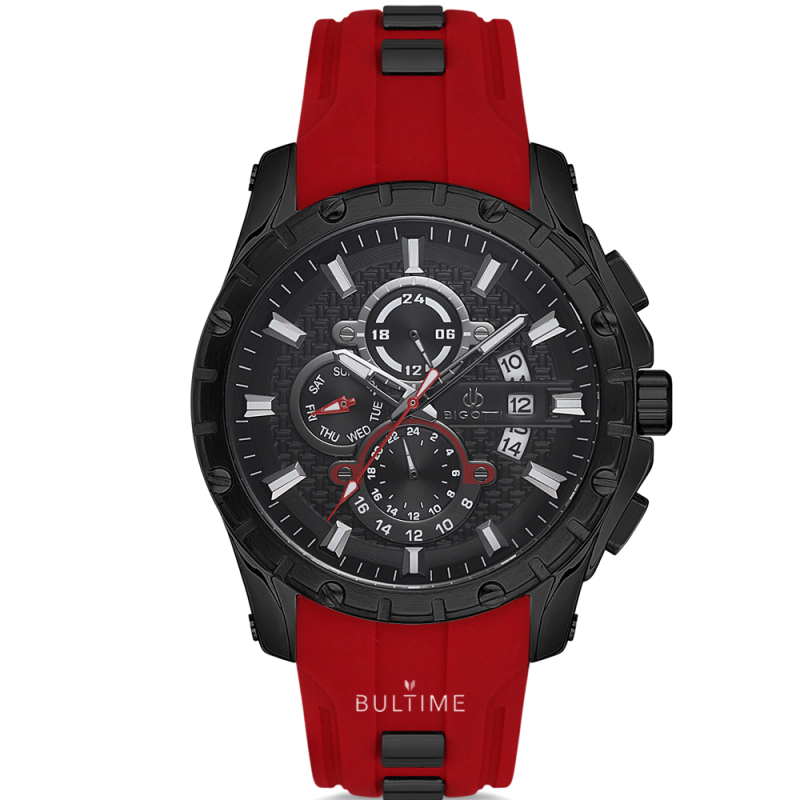 Мъжки часовник Bigotti с метален копрус в черен цвят. Силиконова каишка. Мултифункционален