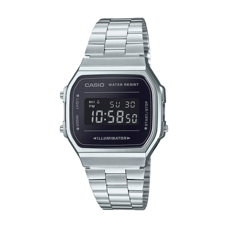 Спортно-елегантен часовник Casio от колекцията Vintage. Подходящ е и за мъже и за жени. Корпусът е изработен от полимерен материал. Верижката е от неръждаема стомана. Дисплеят е дигитален. Моделът е със следните функции: автоматичен календар, хронометър, 12/24 часов формат, дневна аларма, led осветяване на дисплея. Задвижва се от кварцов механизъм с батерия CR2016. Водоустойчивост 3 ATM - допускат се леки пръски, не се препоръчва обилно мокрене.