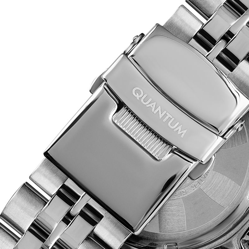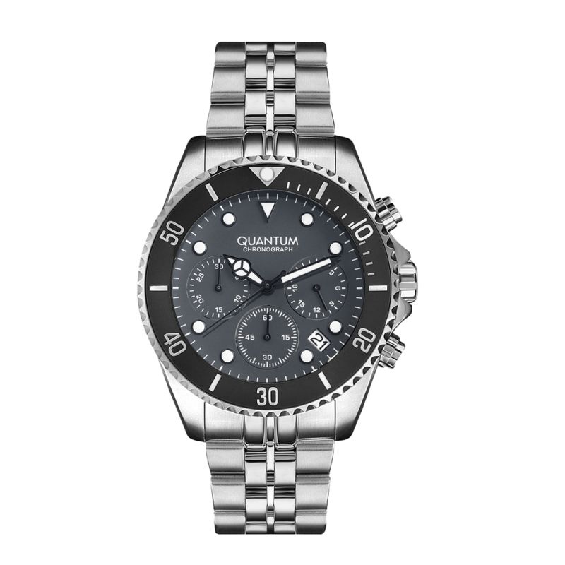 Спортно-елегантен мъжки часовник Quantum от колекцията Powertech. Дисплей хронограф с луминесцентно покритие на стрелките и индексите. Безел в черен цвят. Стъкло минерал-кристал с антирефлексно покритие. Корпус и верижка изработени от неръждаема стомана. Диаметър на корпуса 44 мм. Часовникът се задвижва от кварцов механизъм с калибър VR32B15. Водоустойчивост 10 ATM - позволява мокрене, къпане и плуване във водни басейни.