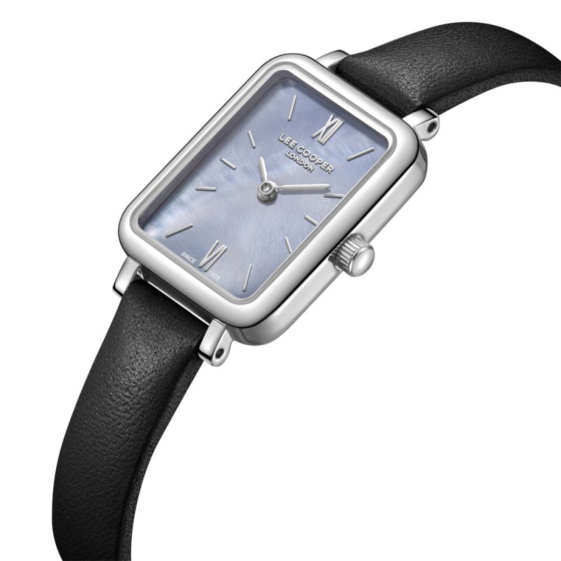 Класически модел часовник Lee Cooper със стилен дизайн. Корпус изработен от супер метал. Каишка от естествена кожа. Аналогов дисплей в син седефен цвят със сребристи детайли. Стъкло минерал-кристал. Задвижва се от кварцов механизъм. Водоустойчивост 3 ATM - допускат се леки пръски, не се препоръчва обилно мокрене.
