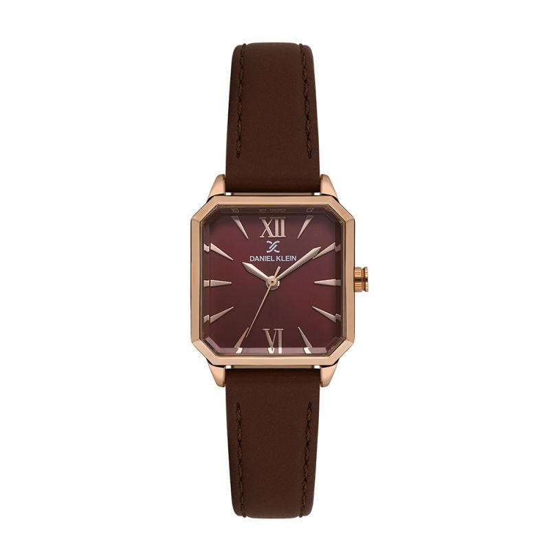 Дамски часовник Daniel Klein от колекцията Premium. Аналогов дисплей с изчистен дизайн. Метален корпус в комбинация с тъмночеревна каишка от естествена кожа. Стъкло минерал-кристал. Задвижва се от кварцов механизъм VJ21C1. Водоустойчивост 3 ATM - допускат се леки пръски, не се препоръчва обилно мокрене.