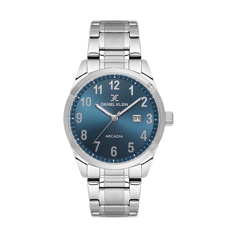 Мъжки часовник Daniel Klein със спортно-елегантна визия от колекцията Arcadia. Аналогов дисплей в тъмносин цвят с показател за дата. Метален корпус в комбинация с верижка от неръждаема стомана. Диаметър на корпуса 49.5 мм. Стъкло минерал-кристал. Задвижва се от кварцов механизъм PC32S11. Водоустойчивост 3 ATM - допускат се леки пръски, не се препоръчва обилно мокрене.