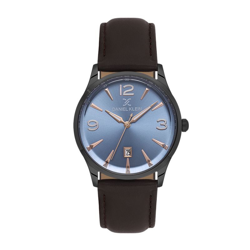 Мъжки часовник Daniel Klein със стилен дизайн от колекцията Premium. Аналогов дисплей в светлосин цвят с показател за дата. Метален корпус. Каишка от естествена кожа в кафяв цвят. Диаметър на корпуса 48 мм. Стъкло минерал-кристал. Задвижва се от кварцов механизъм VX42E12W. Водоустойчивост 5 ATM - допускат се леки пръски и взимане на душ, не се препоръчва обилно мокрене.