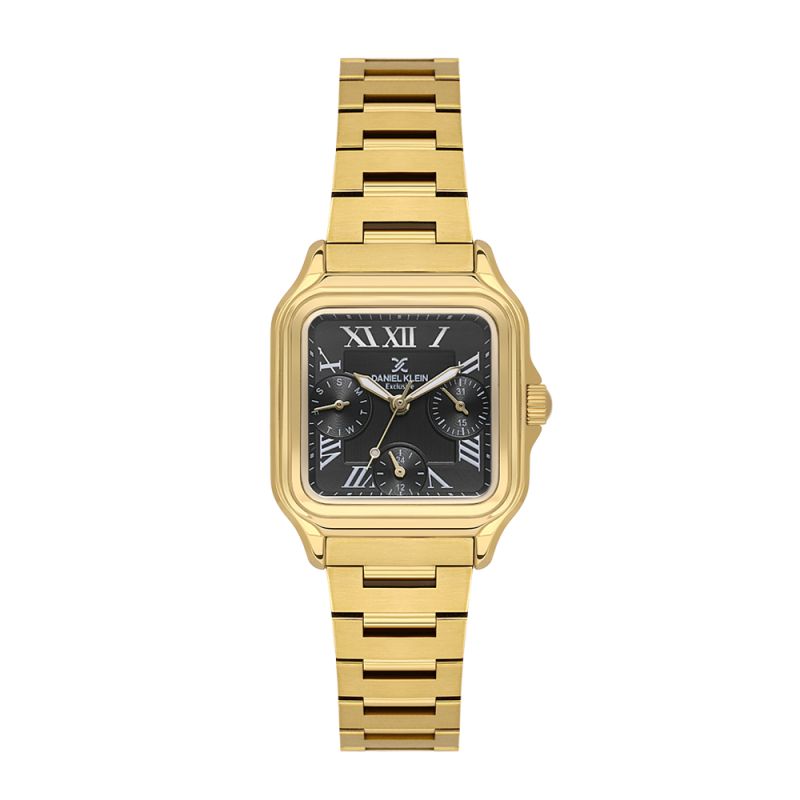 Дамски часовник Daniel Klein от колекцията Exclusive. Мултифункционален дисплей с показатели за дата, ден от седмицата и 24 часов формат. Метален корпус в комбинация с верижка от неръждаема стомана. Стъкло минерал-кристал. Задвижва се от кварцов механизъм VX3JE1. Водоустойчивост 3 ATM - допускат се леки пръски, не се препоръчва обилно мокрене.