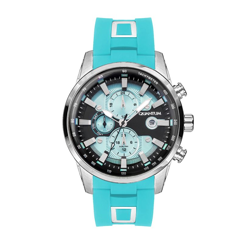 Мъжки часовник Quantum със спортен дизайн. Моделът е с мултифункционален дисплей и стъкло минерал-кристал с антирефлексно покритие. Корпус от неръждаема стомана в комбинация със силиконова каишка. Диаметър на корпуса 47 мм. Задвижва се от кварцов механизъм. Водоустойчивост 10 ATM - позволява мокрене, къпане и плуване във водни басейни.