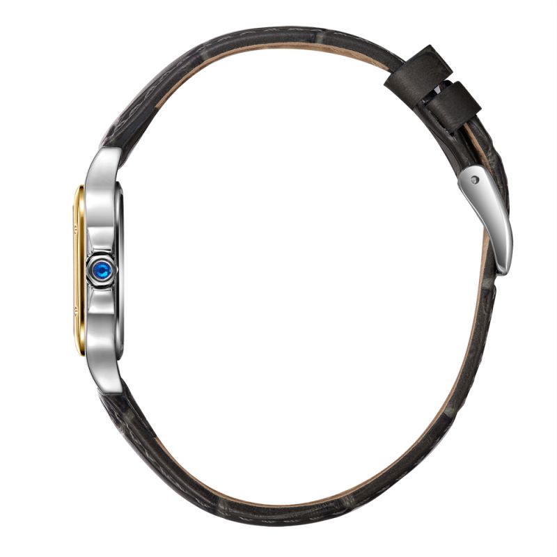 Класически модел дамски часовник Lee Cooper със стилен дизайн. Бял аналогов дисплей със сини стрелки и римски цифри в черен цвят. Стъкло минерал-кристал. Корпус изработен от супер метал - специална сплав, създадена от марката. Тъмносива каишка от естествена кожа. Задвижва се от кварцов механизъм. Водоустойчивост 3 ATM - допускат се леки пръски, не се препоръчва обилно мокрене.