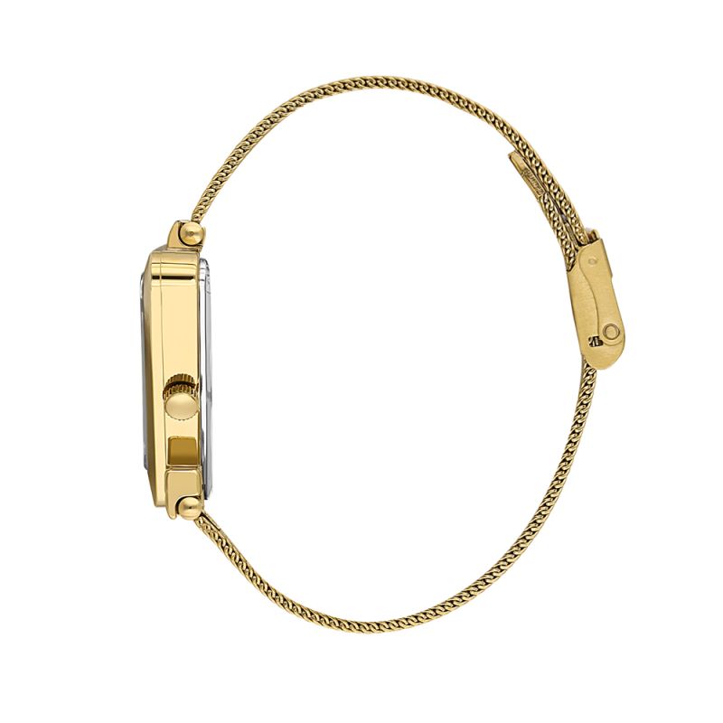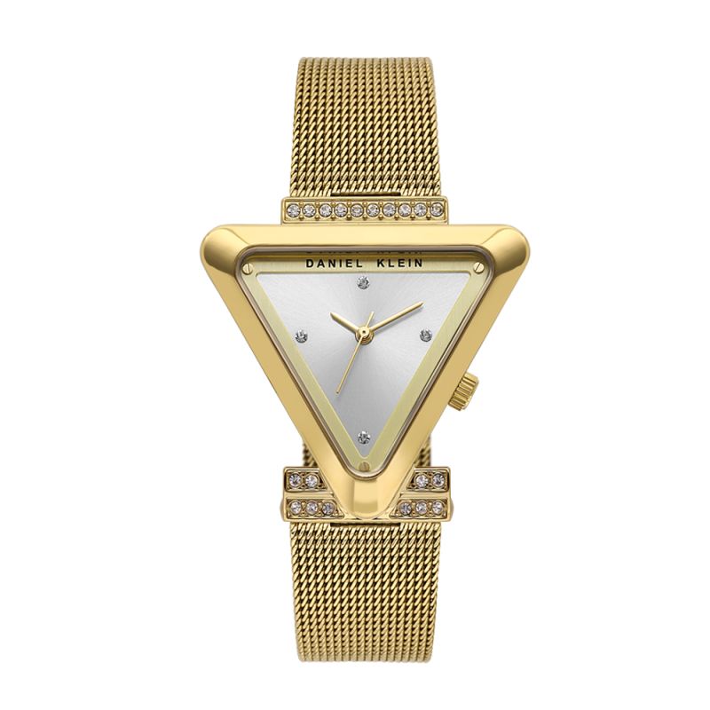 Впечатляващ дамски часовник Daniel Klein с елегантна визия от колекцията Premium. Моделът е с декорация от инкрустирани кристали от две страни на корпуса, при свързването с верижката и по циферблата. Дисплеят е аналогов със стилен дизайн. Стъклото е минерал-кристал. Часовникът е с метален корпус и меш верижка от неръждаема стомана. Задвижва се от кварцов механизъм 2035. Водоустойчивост 3 ATM - допускат се леки пръски, не се препоръчва обилно мокрене.