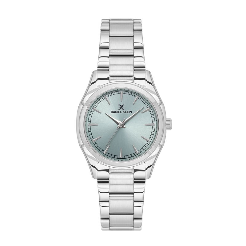 Класически модел дамски часовник Daniel Klein от колекцията Premium. Аналогов дисплей във светлозелен цвят със сребристи стрелки и индекси. Стъкло минерал-кристал. Корпус изработен от метал. Сребриста верижка от неръждаема стомана. Диаметър на корпуса 30 мм. Задвижва се от кварцов механизъм. Водоустойчивост 3 ATM - допускат се леки пръски, не се препоръчва обилно мокрене.