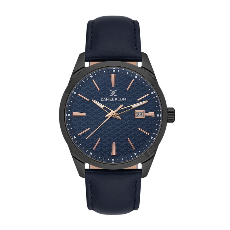 Мъжки часовник Daniel Klein с класически дизайн от колекцията Premium. Аналогов дисплей с интересна основа и показател за дата. Стъкло минерал-кристал. Корпус изработен от метал. Каишка от естествена кожа в тъмносин цвят. Диаметър на корпуса 42 мм. Часовникът се задвижва от кварцов механизъм. Водоустойчивост 5 ATM - допускат се леки пръски и взимане на душ, не се препоръчва обилно мокрене.