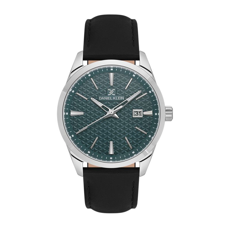 Мъжки часовник Daniel Klein с класически дизайн от колекцията Premium. Аналогов дисплей с интересна основа и показател за дата. Стъкло минерал-кристал. Корпус изработен от метал. Каишка от естествена кожа в черен цвят. Диаметър на корпуса 42 мм. Часовникът се задвижва от кварцов механизъм. Водоустойчивост 5 ATM - допускат се леки пръски и взимане на душ, не се препоръчва обилно мокрене.