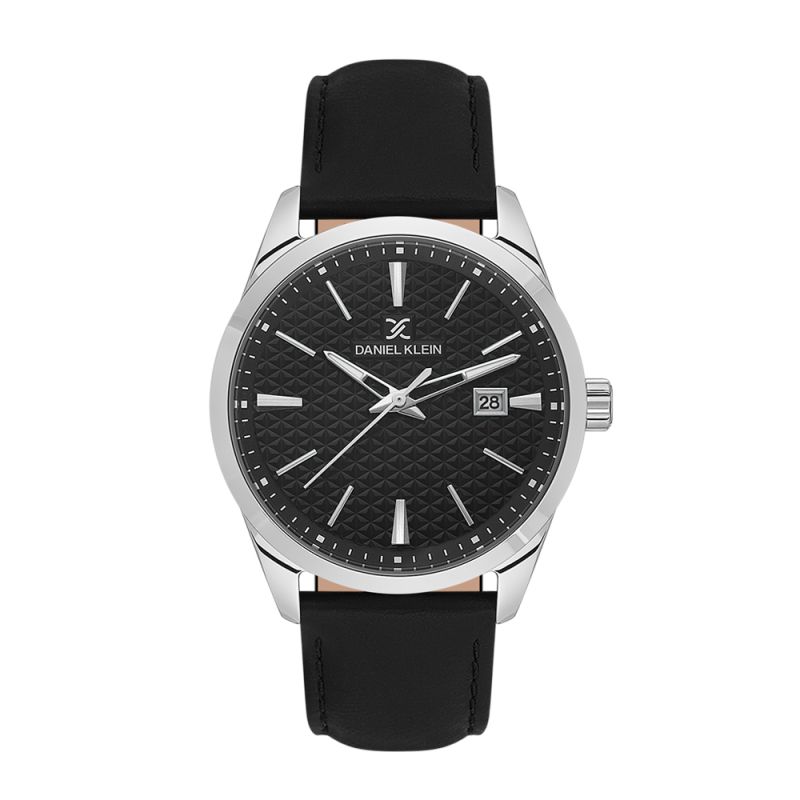 Мъжки часовник Daniel Klein с класически дизайн от колекцията Premium. Аналогов дисплей с интересна основа и показател за дата. Стъкло минерал-кристал. Корпус изработен от метал. Каишка от естествена кожа в черен цвят. Диаметър на корпуса 42 мм. Часовникът се задвижва от кварцов механизъм. Водоустойчивост 5 ATM - допускат се леки пръски и взимане на душ, не се препоръчва обилно мокрене.