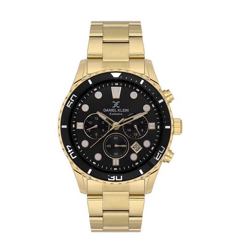 Модерен мъжки часовник Daniel Klein със спортно-ежедневен дизайн от колекцията Exclusive. Черен мултифункционален дисплей със златисти детайли. Луминесцентно покритие върху стрелките и индексите. Стъкло минерал-кристал. Корпус изработен от метал. Верижка от неръждаема стомана. Диаметър на корпуса 44 мм. Часовникът се задвижва от кварцов механизъм. Водоустойчивост 5 ATM - допускат се леки пръски и взимане на душ, не се препоръчва обилно мокрене.