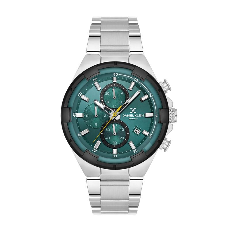Модерен мъжки часовник Daniel Klein със спортно-ежедневен дизайн от колекцията Exclusive. Моделът е с мултифункционален дисплей. Луминесцентно покритие върху стрелките и индексите. Стъкло минерал-кристал. Корпус изработен от метал. Верижка от неръждаема стомана. Диаметър на корпуса 44 мм. Часовникът се задвижва от кварцов механизъм. Водоустойчивост 5 ATM - допускат се леки пръски и взимане на душ, не се препоръчва обилно мокрене.