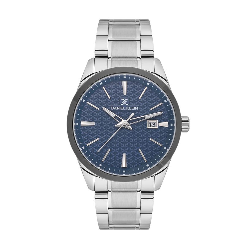 Мъжки часовник Daniel Klein с класически дизайн от колекцията Premium. Аналогов дисплей в тъмносин цвят с интересна основа и показател за дата. Стъкло минерал-кристал. Корпус изработен от метал. Верижка от неръждаема стомана. Диаметър на корпуса 42 мм. Часовникът се задвижва от кварцов механизъм. Водоустойчивост 5 ATM - допускат се леки пръски и взимане на душ, не се препоръчва обилно мокрене.