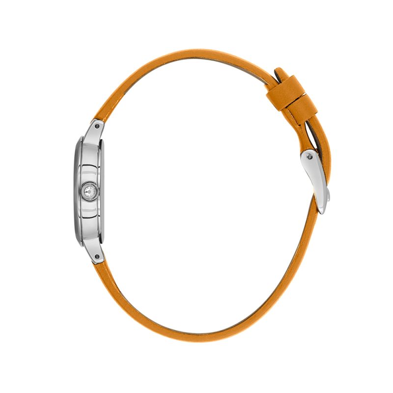 Дамски часовник Daniel Klein със стилен дизайн от колекцията Premium. Аналогов дисплей в оранжев цвят със сребристи стрелки и индекси. Стъкло минерал-кристал. Корпус изработен от метал. Каишка от естествена кожа. Диаметър на корпуса 26 мм. Часовникът се задвижва от кварцов механизъм. Водоустойчивост 3 ATM - допускат се леки пръски, не се препоръчва обилно мокрене.
