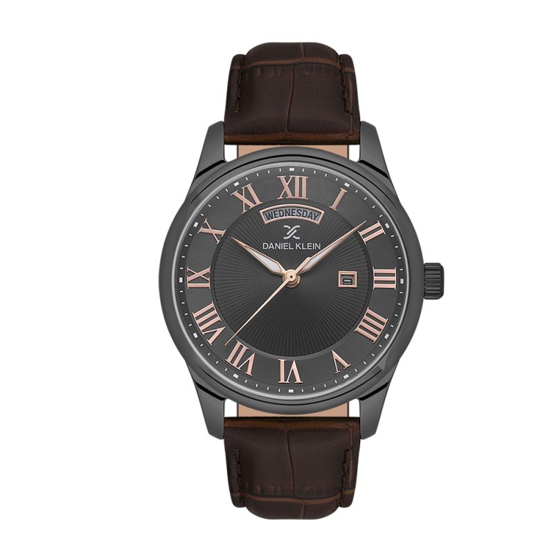 Стилен мъжки часовник Daniel Klein от колекцията Premium. Аналогов дисплей в тъмносив цвят с показатели за дата и ден от седмицата. Луминесцентно покритие върху стрелките. Стъкло минерал-кристал. Диаметър на корпуса 43 мм. Метален корпус в комбинация с каишка от естествена кожа. Часовникът се задвижва от кварцов механизъм. Водоустойчивост 5 ATM - допускат се леки пръски и взимане на душ, не се препоръчва обилно мокрене.