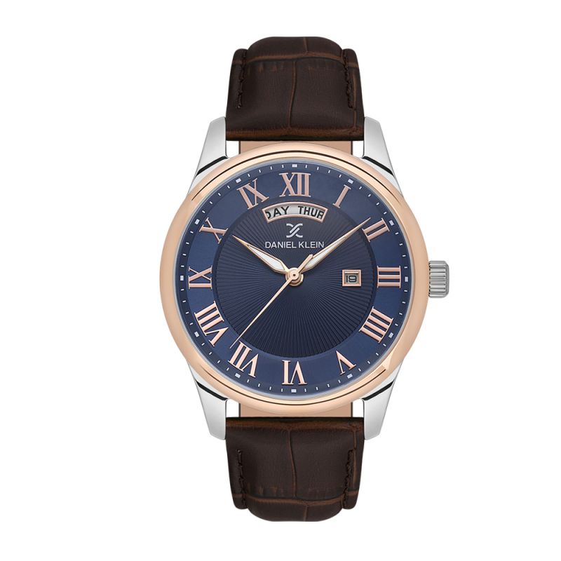 Стилен мъжки часовник Daniel Klein от колекцията Premium. Аналогов дисплей в тъмносин цвят с показатели за дата и ден от седмицата. Луминесцентно покритие върху стрелките. Стъкло минерал-кристал. Диаметър на корпуса 43 мм. Метален корпус в комбинация с каишка от естествена кожа. Часовникът се задвижва  от кварцов механизъм. Водоустойчивост 5 ATM - допускат се леки пръски и взимане на душ, не се препоръчва обилно мокрене.