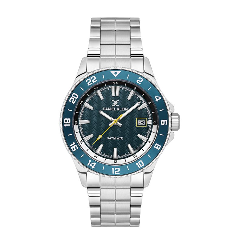 Страхотен модел мъжки часовник Daniel Klein от колекцията Premium. Аналогов дисплей с показател за дата. Луминесцентно покритие върху стрелките и индексите. Стъкло минерал-кристал. Диаметър на корпуса 43 мм. Часовникът е с метален корпус и верижка от неръждаема стомана. Задвижва се от кварцов механизъм. Водоустойчивост 5 ATM - допускат се леки пръски и взимане на душ, не се препоръчва обилно мокрене.