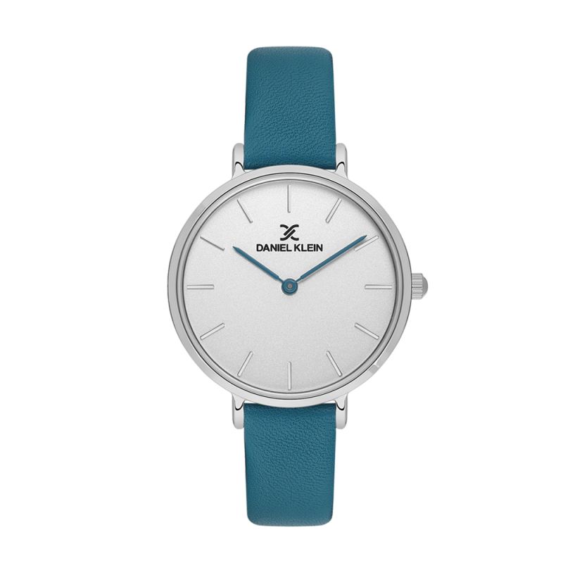 Класически модел дамски часовник Daniel Klein със стилна визия от колекцията Premium. Сребрист аналогов дисплей с изчистен дизайн. Стъкло минерал-кристал. Корпус изработен от метал. Каишка от естествена кожа в син цвят. Диаметър на корпуса 32 мм. Задвижва се от кварцов механизъм. Водоустойчивост 3 ATM - допускат се леки пръски, не се препоръчва обилно мокрене.