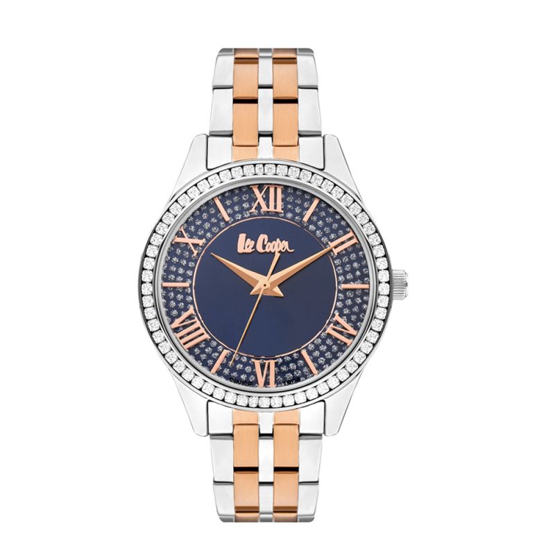 Дамски часовник Lee Cooper с декорация от нежни кристали. Моделът е с корпус от супер метал и метална верижка. Син аналогов дисплей с детайли в цвят розово злато. Стъкло минерал-кристал. Задвижва се от кварцов механизъм. Водоустойчивост 3 ATM - допускат се леки пръски, не се препоръчва обилно мокрене.