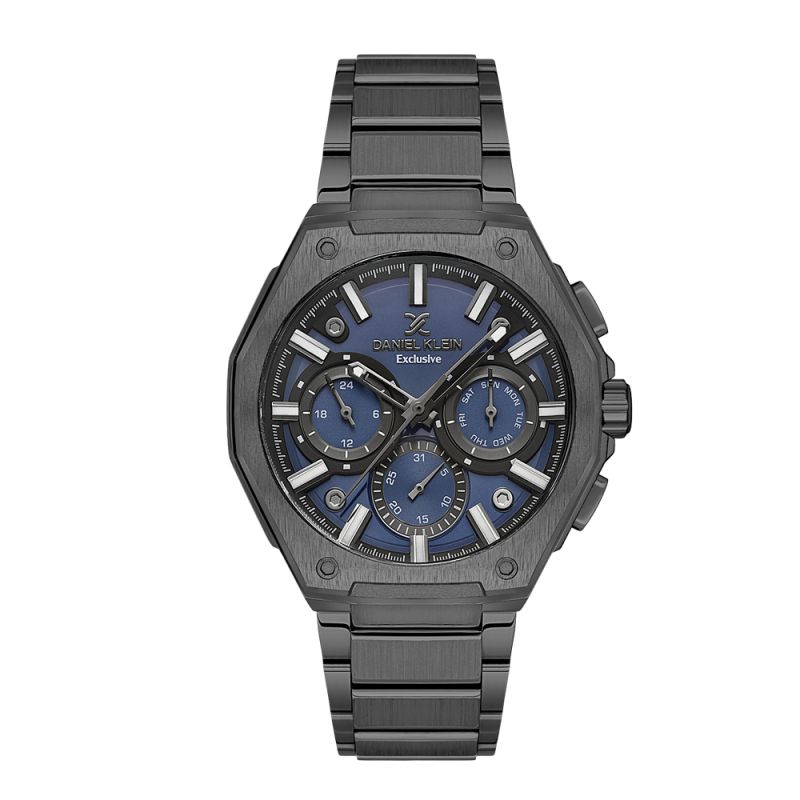 Спортно-елегантен мъжки часовник Daniel Klein с мултифункционален дисплей от колекцията Exclusive. Стъкло минерал-кристал. Моделът е с метален корпус и верижка от неръждаема стомана. Задвижва се от кварцов механизъм. Водоустойчивост 5 ATM - допускат се леки пръски и взимане на душ, не се препоръчва обилно мокрене.