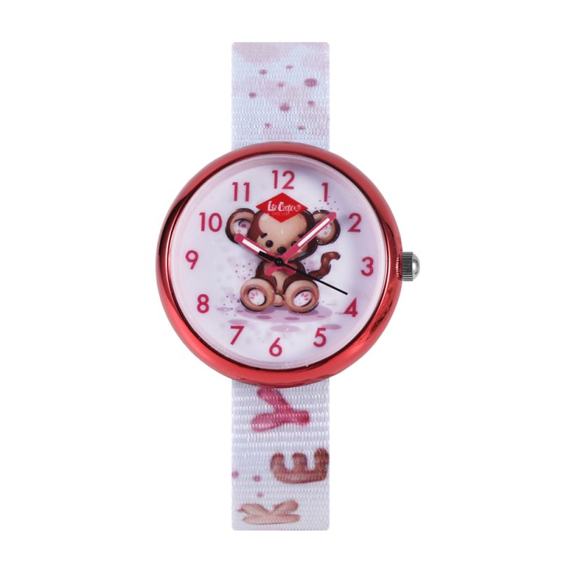Детски часовник Lee Cooper. Аналогов дисплей с изображение на сладко животинче. Стъкло минерал-кристал. Корпус от поликарбонат в комбинация с текстилна каишка. Задвижва се от кварцов механизъм. Водоустойчивост 3 ATM - допускат се леки пръски, не се препоръчва обилно мокрене.