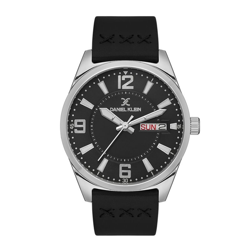 Мъжки часовник Daniel Klein със стилен дизайн от колекцията Premium. Метален корпус в комбинация с каишка от естествена кожа. Черен аналогов дисплей с показател за дата и ден от седмицата. Стъкло минерал-кристал. Задвижва се от кварцов механизъм. Водоустойчивост 5 ATM - допускат се леки пръски и взимане на душ, не се препоръчва обилно мокрене.