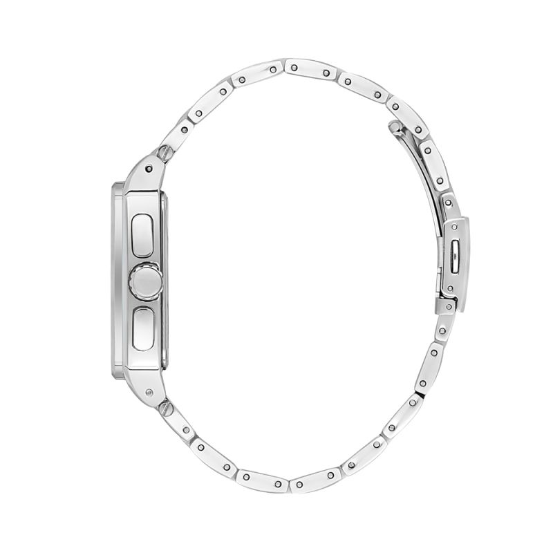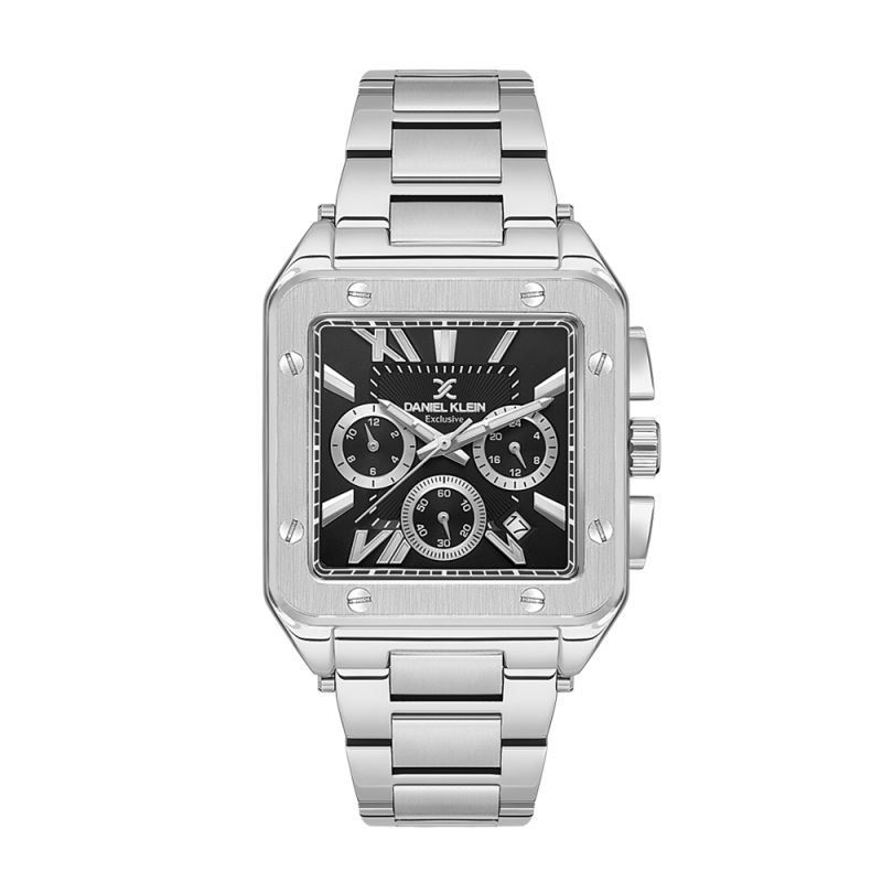 Мъжки часовник Daniel Klein от колекцията Exclusive. Черен мултифункционален дисплей със сребристи детайли. Стъкло минерал-кристал. Моделът е с метален корпус и верижка от неръждаема стомана. Задвижва се от кварцов механизъм. Водоустойчивост 5 ATM - допускат се леки пръски и взимане на душ, не се препоръчва обилно мокрене.