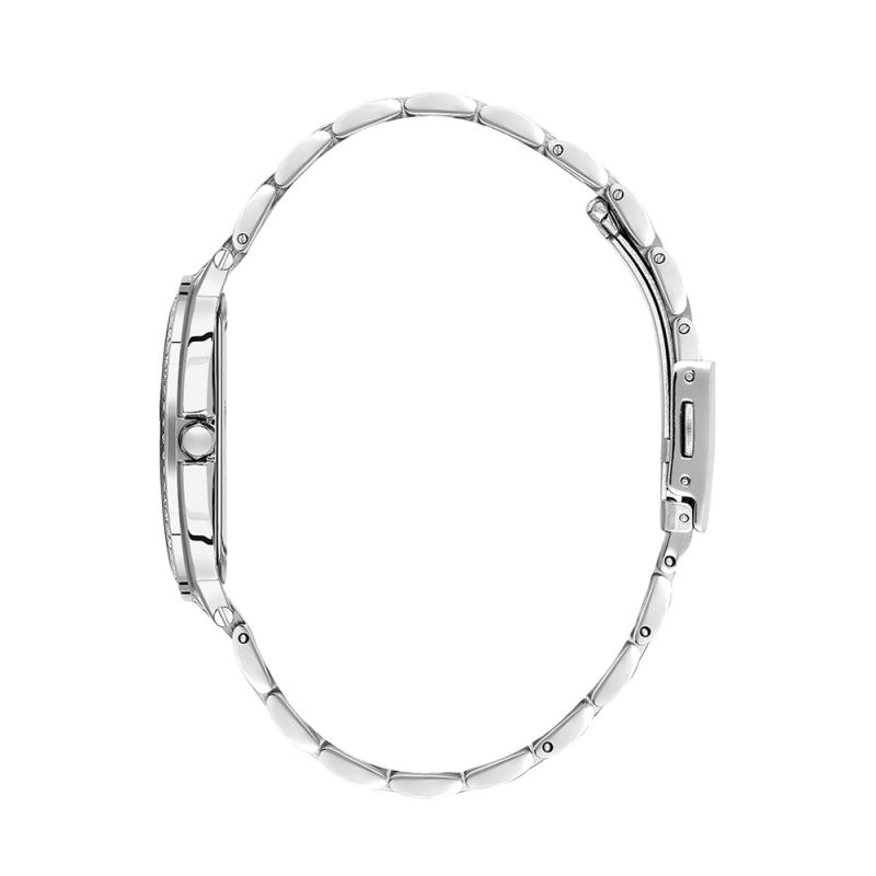 Елегантен дамски часовник Daniel Klein с декорация от нежни кристали по безела и диспплея. Стъкло минерал-кристал. Метален корпус в комбинация с верижка от неръждаема стомана. Задвижва се от кварцов механизъм. Водоустойчивост 3 ATM - допускат се леки пръски, не се препоръчва обилно мокрене.