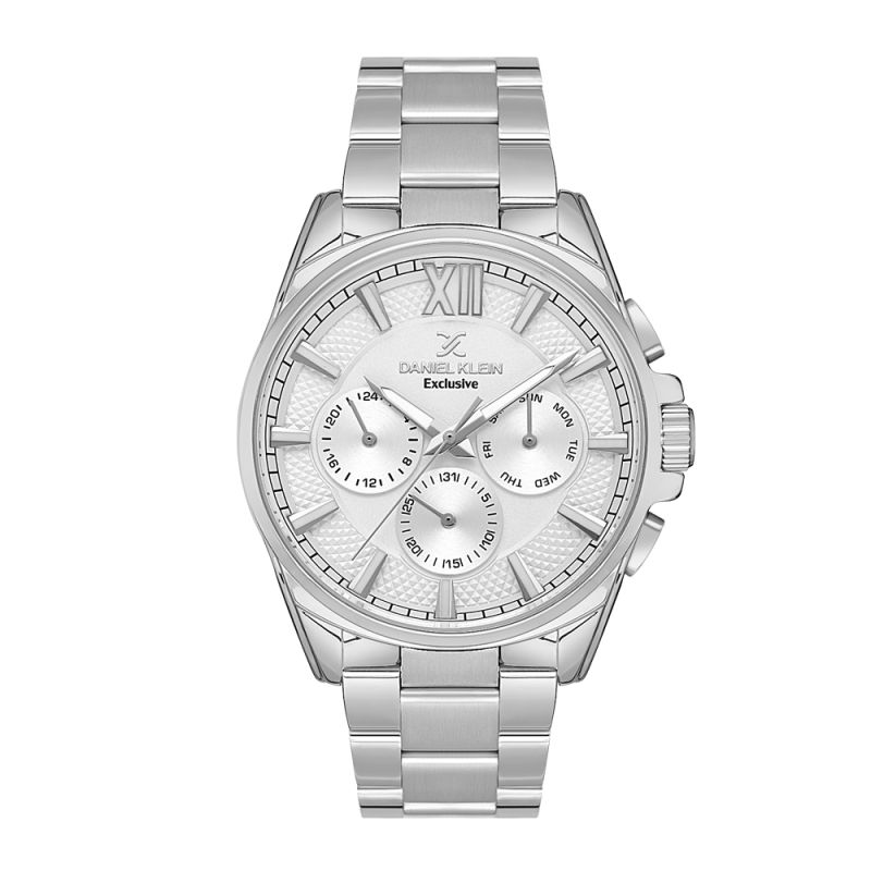 Мъжки часовник Daniel Klein от колекцията Exclusive. Моделът е със сребрист мултифункционален дисплей и стъкло минерал-кристал. Метален корпус, съчетан с верижка от неръждаема стомана. Часовникът се задвижва от кварцов механизъм. Водоустойчивост 5 ATM - допускат се леки пръски и взимане на душ, не се препоръчва обилно мокрене.