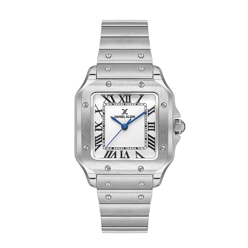 Дамски часовник Daniel Klein с класически дизайн от колекцията Premium. Бял аналогов дисплей със сини стрелки и черни римски цифри. Метален корпус в комбинация с верижка от неръждаема стомана. Кварцов механизъм. Водоустойчивост 3 ATM - допускат се леки пръски, не се препоръчва обилно мокрене.