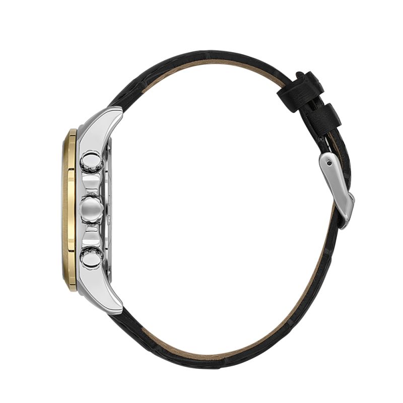 Стилен мъжки часовник с мултифункционален дисплей. Метален корпус в комбинация с каишка от естствена кожа. Стъкло минерал-кристал. Кварцов механизъм. Водоустойчивост 5 ATM - допускат се леки пръски и взимане на душ, не се препоръчва обилно мокрене.