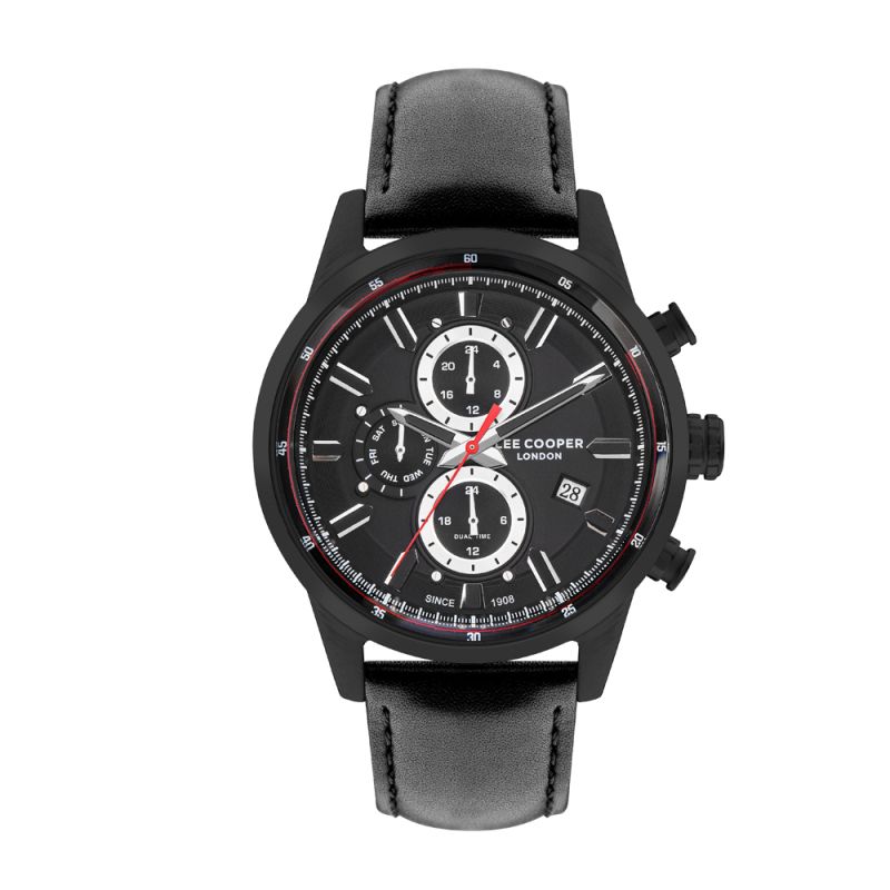 Стилен мъжки часовник Lee Cooper с мултифункционален дисплей. Корпус изработен от супер метал, съчетан с каишка от естествена кожа. Стъкло минерал-кристал. Задвижва се от кварцов механизъм. Водоустойчивост 5 ATM - допускат се леки пръски и взимане на душ, не се препоръчва обилно мокрене.