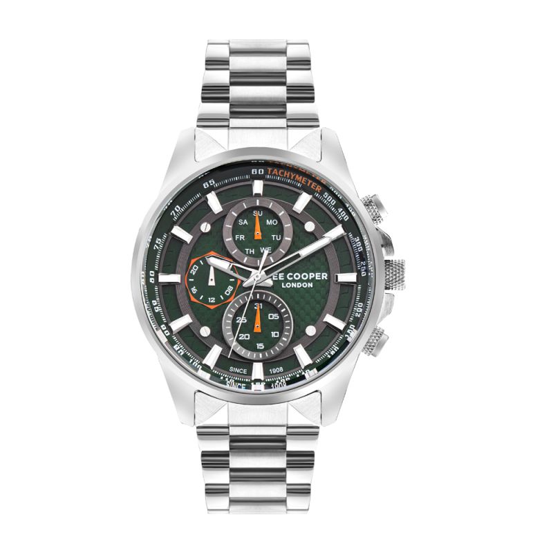 Мъжки часовник Lee Cooper с мултифункционален дисплей. Луминисцентно покритие на стрелките и индексите. Корпус изработен от супер метал, съчетан с метална верижка. Стъкло минерал-кристал. Часовникът се задвижва от кварцов механизъм. Водоустойчивост 5 ATM - допускат се леки пръски и взимане на душ, не се препоръчва обилно мокрене.