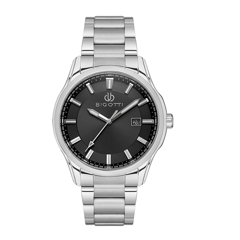 Мъжки часовник Bigotti с класически дизайн. Моделът е с метален корпус и верижка от неръждаема стомана. Аналогов дисплей със стилен дизайн и показател за дата. Стъкло минерал-кристал. Задвижва се от кварцов механизъм. Водоустойчивост 5 ATM - допускат се леки пръски и взимане на душ, не се препоръчва обилно мокрене.