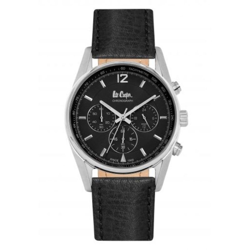 Мъжки часовник Lee Cooper с елегантен и модерен дизайн. Моделът е с дисплей тип хронограф в черен цвят. Корпус от супер метал и стъкло минерал-кристал. Каишка от естествена кожа. Задвижва се от кварцов механизъм. Водоустойчивост 3 ATM - допускат се леки пръски, не се препоръчва обилно мокрене.