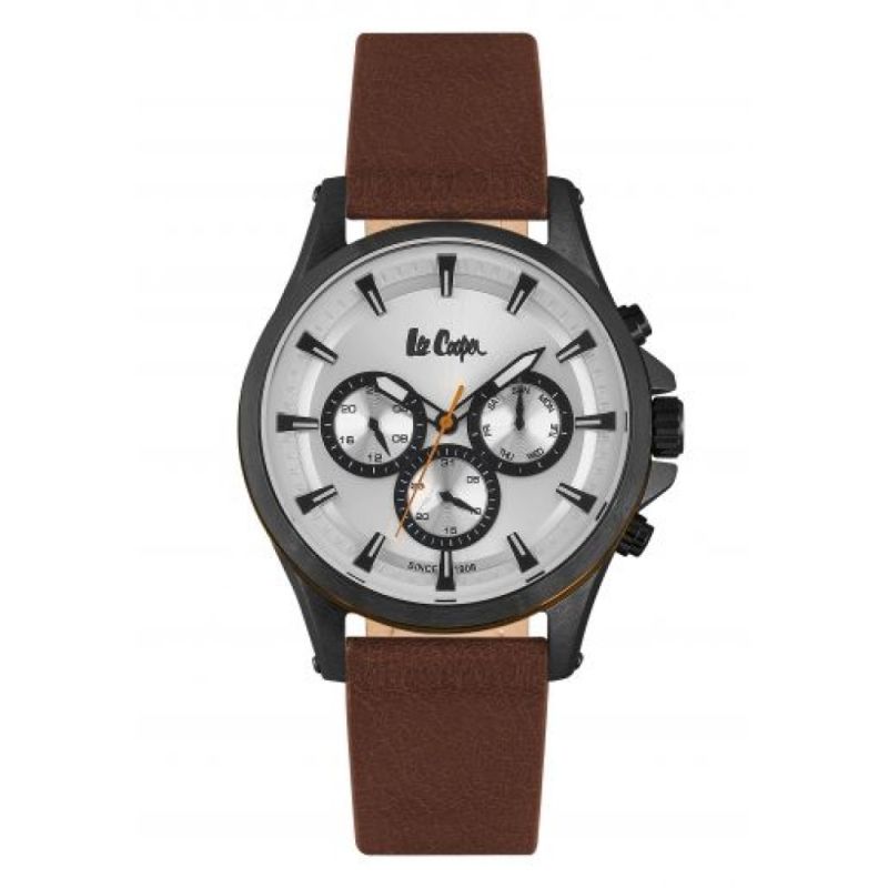 Мъжки часовник Lee Cooper с мултифункционален дисплей. Моделът е с корпус от супер метал и кафява кожена каишка. Стъкло минерал-кристал. Задвижва се от кварцов механизъм. Водоустойчивост 3 ATM - допускат се леки пръски, не се препоръчва обилно мокрене.