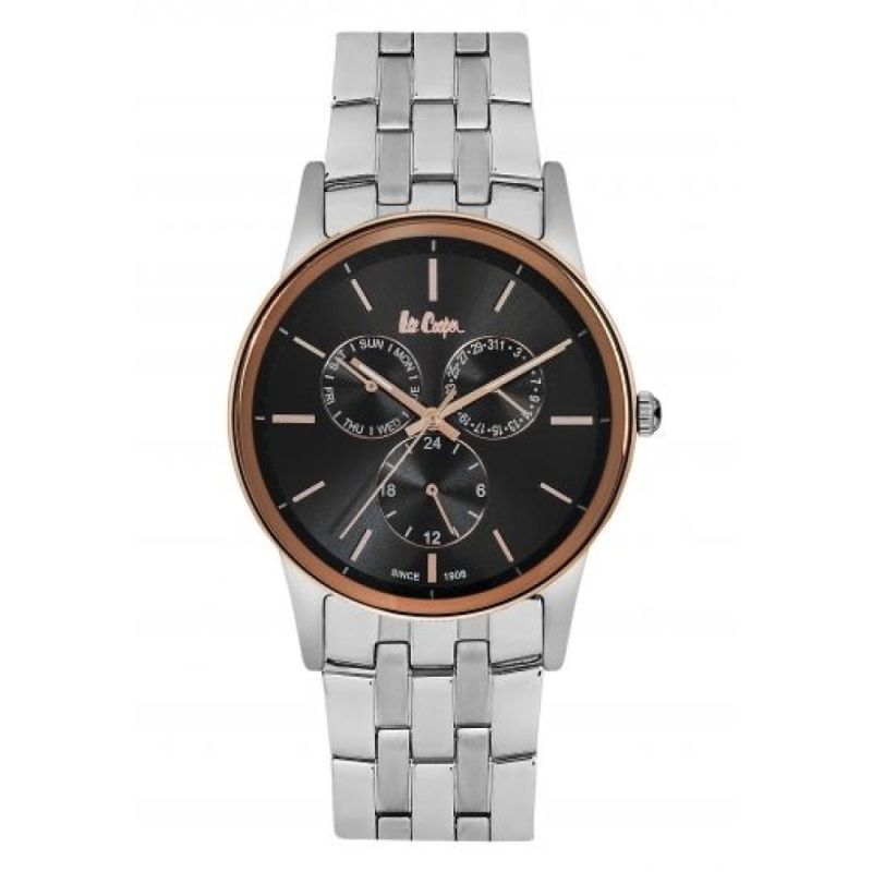 Мъжки часовник Lee Cooper с мултифункционален дисплей в черен цвят. Корпус и верижка от супер метал. Стъкло минерал-кристал. Задвижва се от кварцов механизъм. Водоустойчивост 3 ATM - допускат се леки пръски, не се препоръчва обилно мокрене.