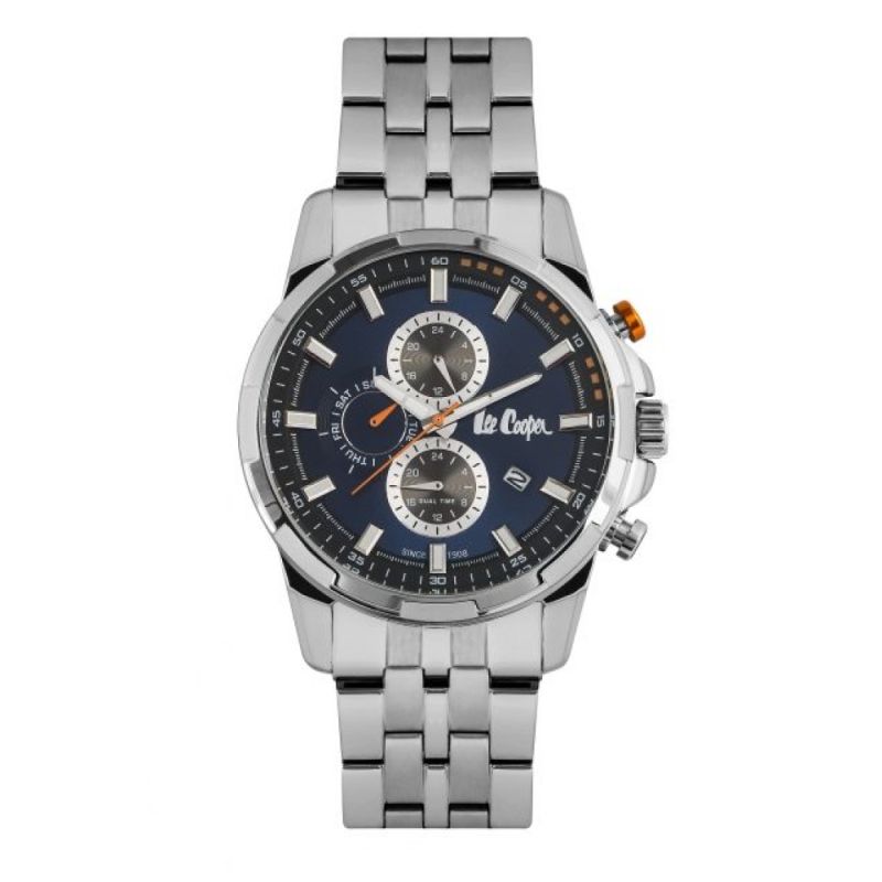 Мъжки часовник Lee Cooper от колекцията Classic Dual Time. Моделът е с корпус и верижка от супер метал. Стъкло минерал-кристал. Мултифункционален дисплей с показатели за дата, ден и двойно време. Задвижва се от кварцов механизъм. Водоустойчивост 3 ATM - допускат се леки пръски, не се препоръчва обилно мокрене.
